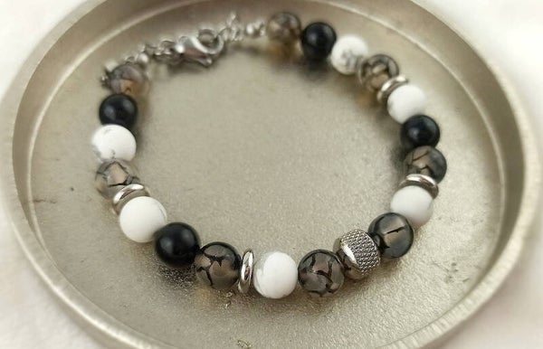 Laissez-moi vous presenter DRAGO, Bracelet en JASPE VEINE DE DRAGON, ONYX & HOWLITE.